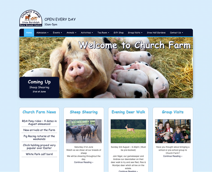 The team at Church Farm were looking for a new content managed website – in particular one that allowed them to add new events, activities, news and animals to the site themselves. As a tourist attraction, having an attractive and easy to navigate website that could be quickly and easily updated was absolutely essential.