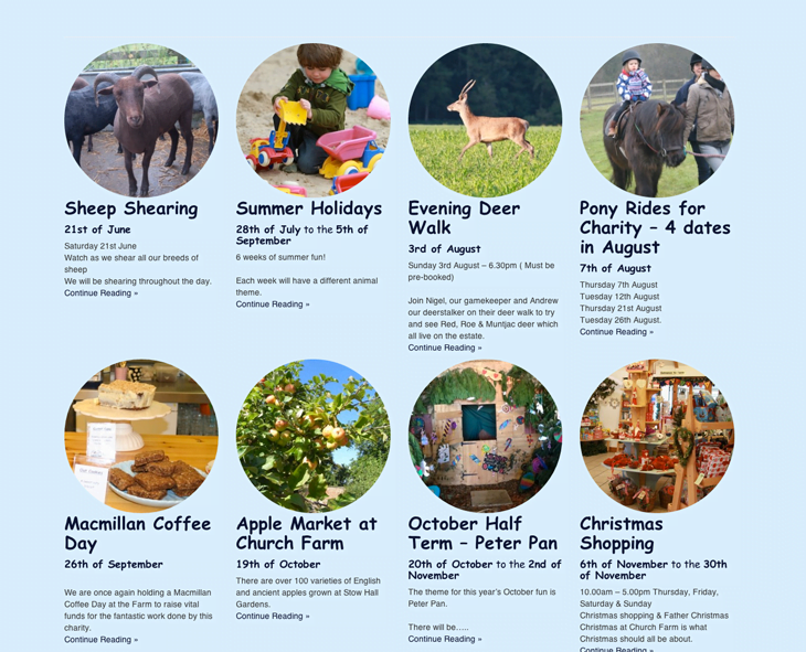 Thanks to the clever ‘under the hood’ admin system and design, when the Church Farm team add a new event or animal to the farm’s expanding list, that information is automatically added onto the correct page and styled to match the rest of the site’s design and layout, all with the minimum amount of hassle.